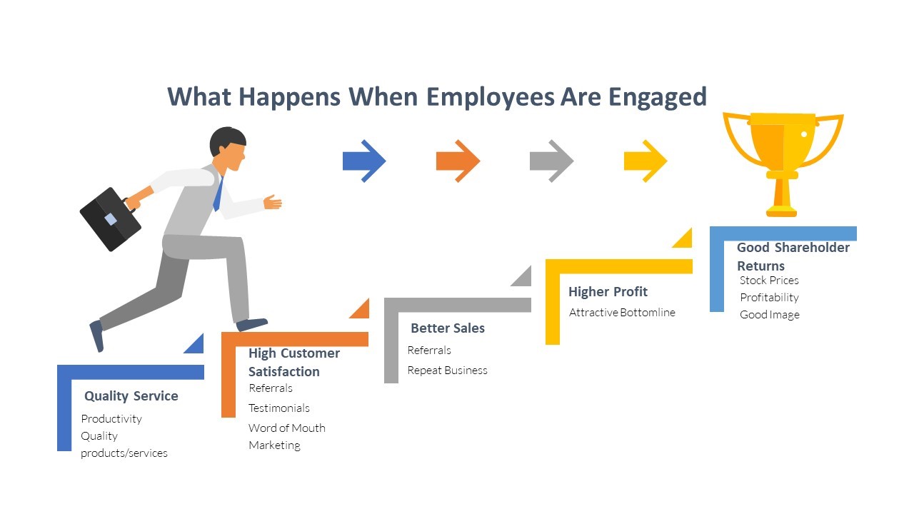 Employee engagement is commitment – particularly an employee’s emotional commitment to the organization, its goals, and its objectives. An engaged employee is an employee who cares about what they do and how their role helps the company. You want them to work not just for the paycheck or the promotion, but for the organization’s goals, as well.